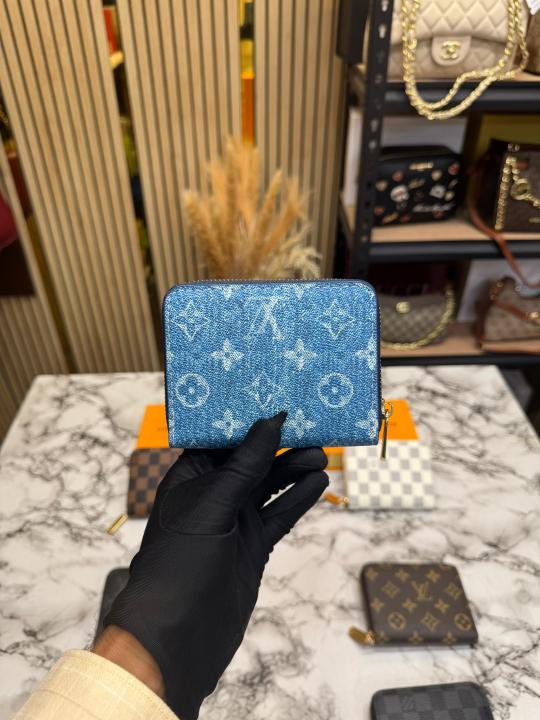 Loui_s Vuitton LV Denim Monogram Mini Zip Wallet (Blue) (60067)